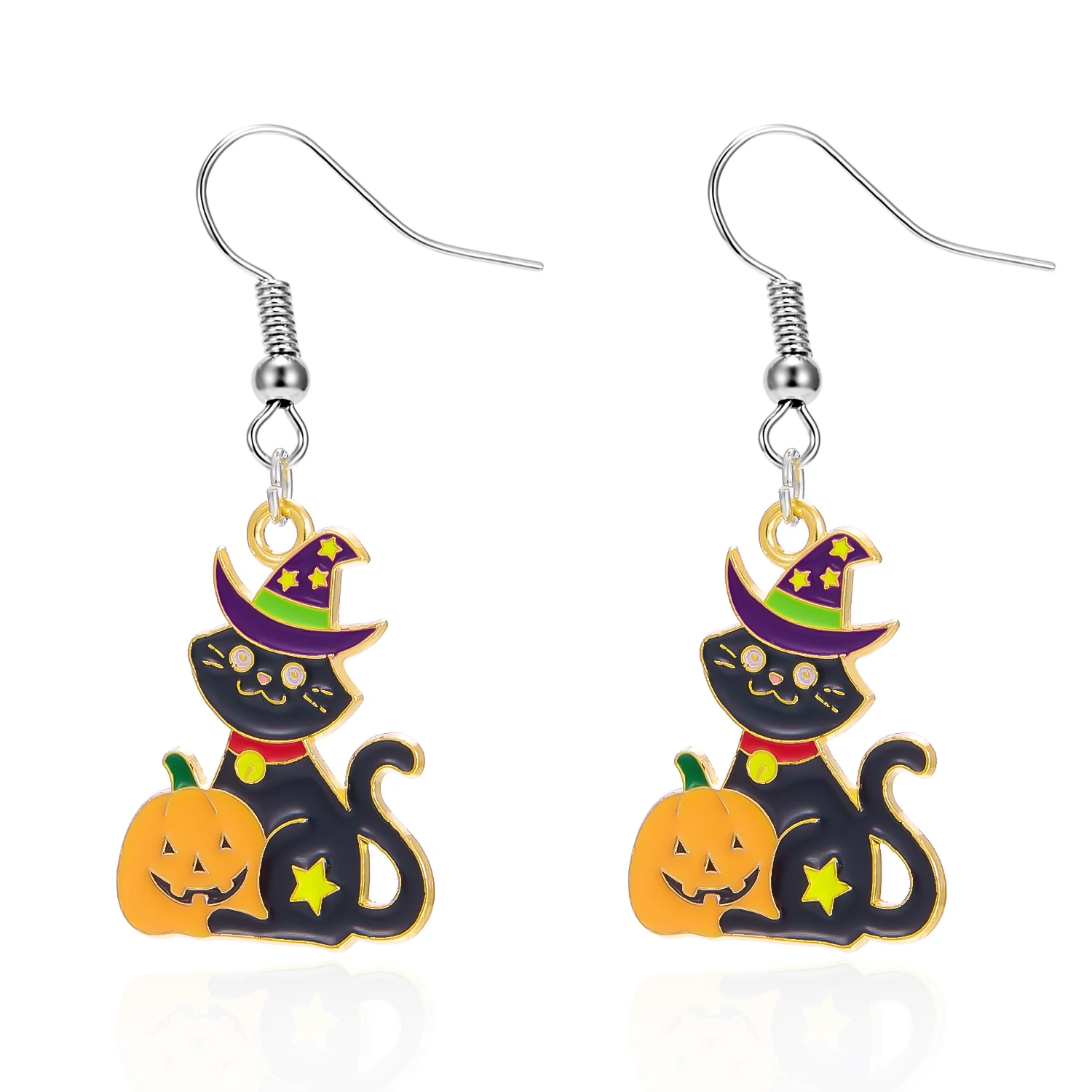 Asymmetric Black Cat Drop Earrings for Women Funny Cartoon Ghost Spider Web Dangle Earring Girls Party Jewelry Halloween Gift